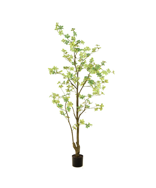 De Tropaeolum kunstboom van Emerald Eternal Green brengt een vleugje subtropische charme in je interieur. Oorspronkelijk geïnspireerd op planten uit Zuid- en Midden-Amerika, heeft deze boom een lichte en verfijnde uitstraling. De slanke stammen, fijne takken en kleine, ronde bladeren geven hem een luchtig en natuurlijk silhouet dat moeiteloos sfeer toevoegt aan elke ruimte.